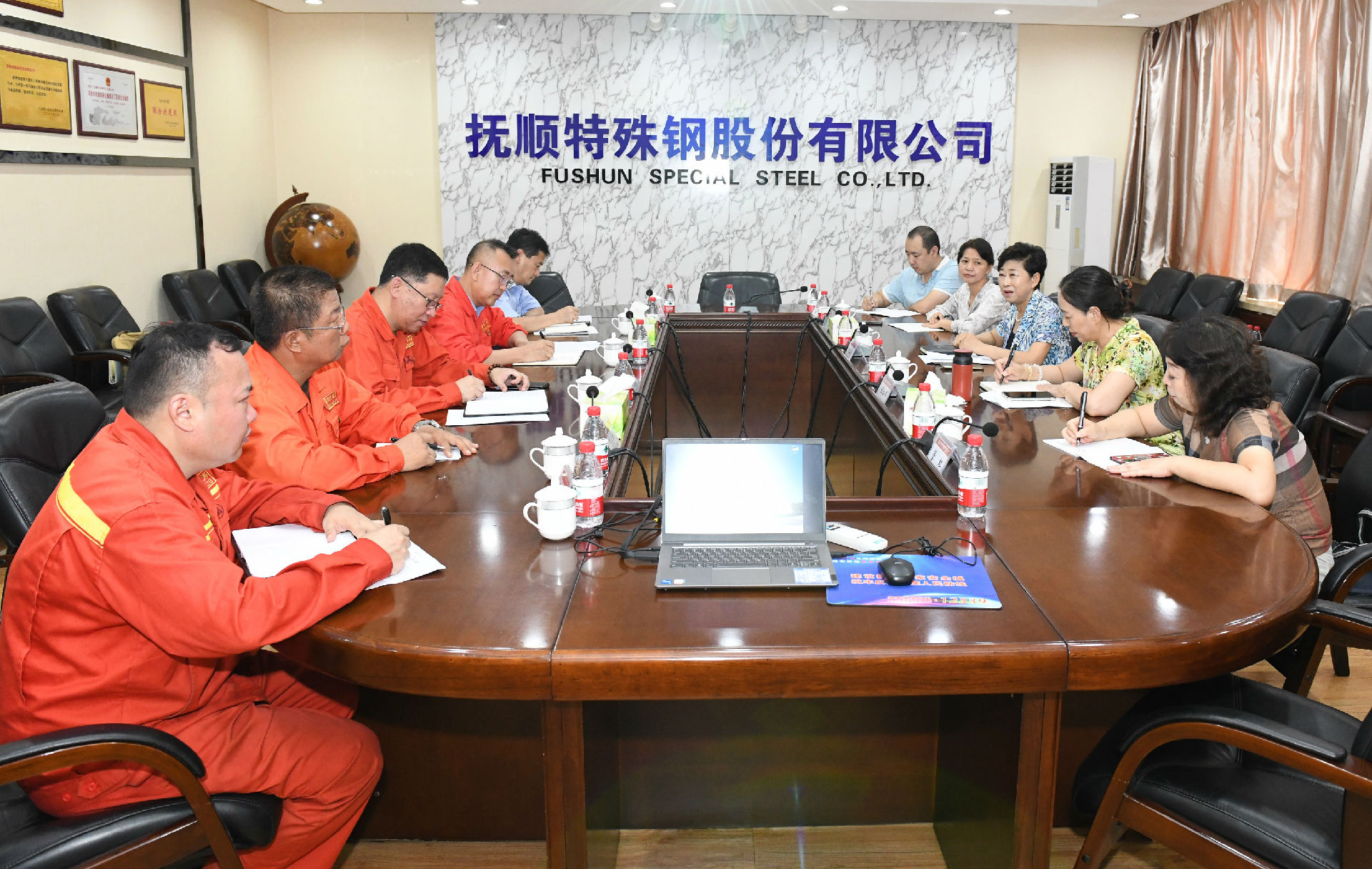 在公司1號會議室,祁勇對王玉霜一行的到來表示歡迎,并感謝市總工會多年來對撫順特鋼的大力支持和幫助。他向客人介紹了公司近期生產經營及工會工作開展情況,并就勞模創(chuàng)新工作室、員工培訓、企業(yè)文化建設等方面工作進行了匯報。他說,撫順特鋼將繼續(xù)堅持走“特鋼更特”的發(fā)展道路,以科技創(chuàng)新、工藝優(yōu)化為抓手大力提升和發(fā)展新質生產力。公司工會將通過勞模創(chuàng)新工作室、員工培訓基地等平臺加強技能人才培養(yǎng)工作,持續(xù)做好員工技能的“傳、幫、帶”,在全面振興新突破三年行動中貢獻工人階級的智慧和力量。希望市總工會在員工培訓、勞模工作室建設、工會經費的使用和返還等方面給予支持和幫助,助力企業(yè)高質量發(fā)展。