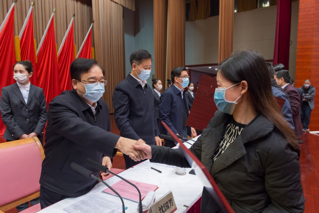 沈國芳向優(yōu)秀企業(yè)、先進單位和個人表示祝賀,向奮戰(zhàn)在疫情防控一線、經(jīng)濟社會發(fā)展一線的全體黨員干部表示衷心感謝、致以崇高敬意。他指出,奮進的道路上需要榜樣,趕超的征途中離不開先鋒。樹立“好榜樣”,就是為了向先進學習、向標桿看齊,延續(xù)“萬眾一心加油干”的旺盛勢頭;進行“大動員”,就是為了號召全市上下奮力拼搏、銳意進取,以“快馬加鞭未下鞍”的昂揚姿態(tài),共同點燃“開放再出發(fā)”的火熱激情,全面掀起“項目提速年”的澎湃熱潮。